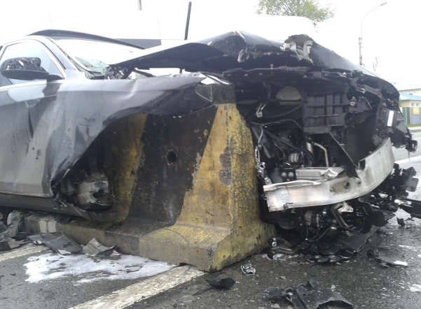 На Выборгском шоссе пьяный водитель Mercedes протаранил бетонные блоки