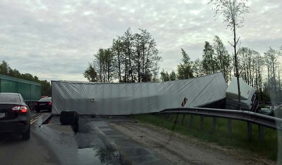 Обгон на Мурманском шоссе закончился для Mercedes ДТП с грузовиком