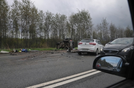 На Московском шоссе у Ям-Ижоры лобовое столкновение, растёт пробка