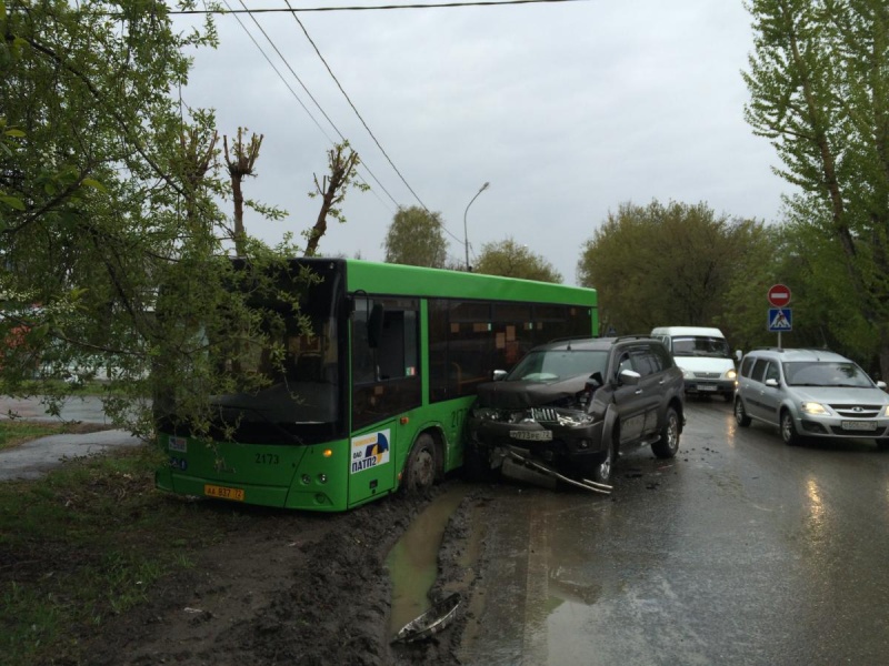В Тюмени внедорожник врезался в рейсовый автобус. Есть потерпевшие