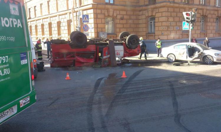 В Петербурге пожарная машина перевернулась в ДТП