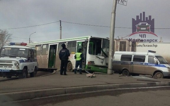 В Красноярске автобус врезался в столб, есть пострадавшие
