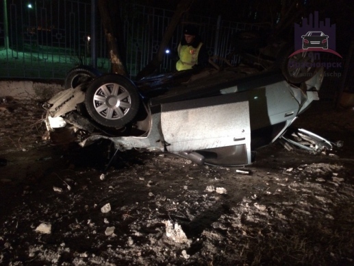 Пьяный водитель из Красноярска снес фонарный столб и перевернулся